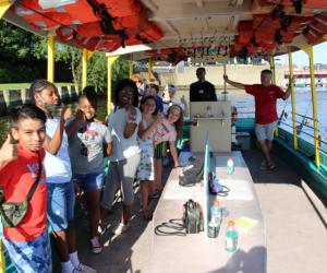 There’s no cabin on this boat, much less any air conditioning beyond the natural Chesapeake breeze. The seats are plain benches. The boat’s performance is on par with a small barge. It’s painted…