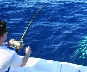 You’re trolling for yellowfin tuna when you see fish on the meter, hanging 75’ deep just below the thermocline. You shift into neutral, crank in the lines, get your jigs over the side, and place them…